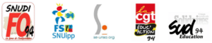 Les organisations syndicales du Val-de-Marne SNUDI-FO, FSU-SNUipp, SE-UNSA, CGT Educ’action, SUD Education appellent ensemble tous les collègues à se réunir dans les écoles pour établir leurs revendications et besoins et décider la grève pour le retrait de ce plan de 168 fermetures.